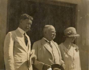 Dari kiri ke kanan: J.G.E.G Voute (Direktur pertama Observatorium Bosscha), K.A.R Bosscha (penyandang dana), Ina Voute (istri J. Voute). Sumber: Bambang Hidayat |